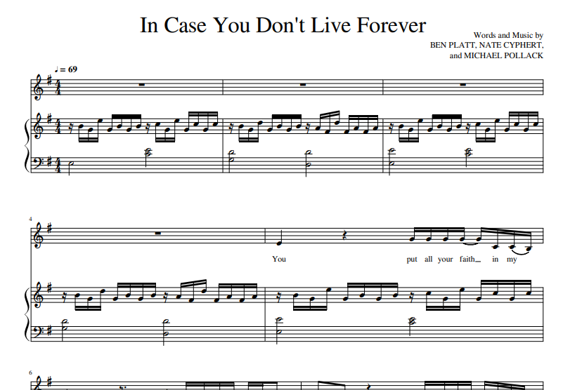 Hello music lovers, today I am sharing the piano notes of the song Ben Platt-In Case You Don’t Live Forever. You can use the download links below to download Ben Platt-In Case You Don’t Live Forever PDF scores.