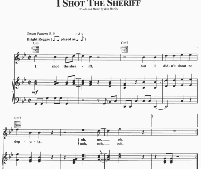 Bob Marley – I Shot The Sheriff Free Sheet Music PDF for Piano