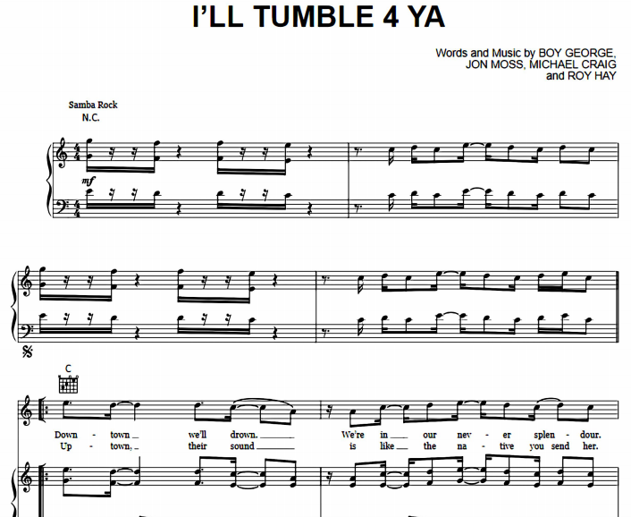 Hello music lovers, today I am sharing the piano notes of the song Culture Club – I’ll Tumble 4 Ya. You can use the download links below to download Culture Club – I’ll Tumble 4 Ya PDF scores.