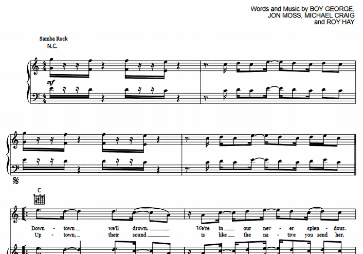 Culture Club – I’ll Tumble 4 Ya Free Sheet Music PDF for Piano
