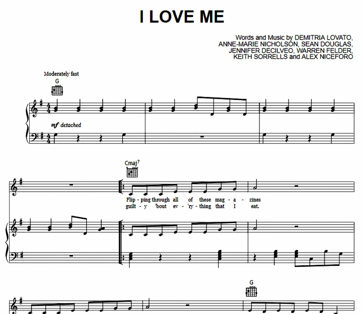 I Love Me Sheet Music Demi Lovato-thepianonotes.com
