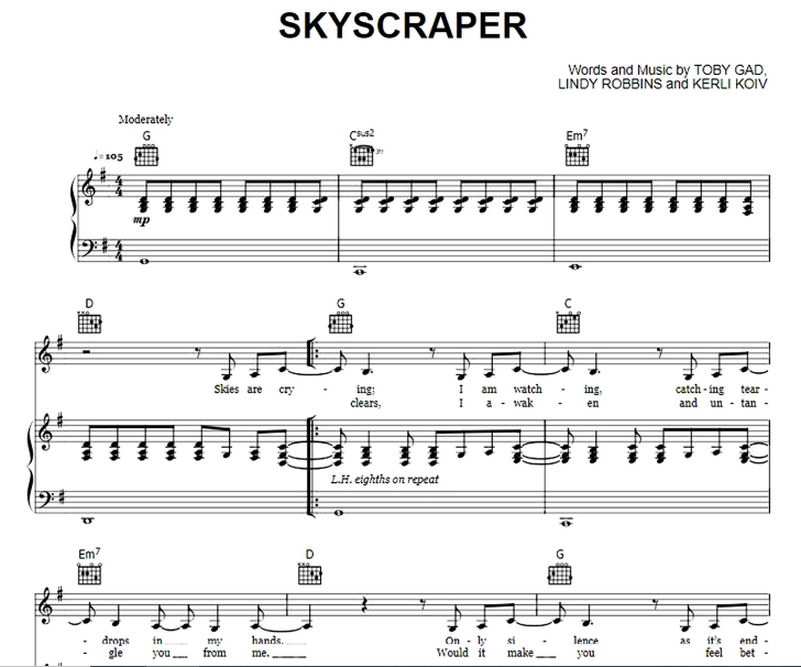 Hello music lovers, today I am sharing the piano notes of the song Demi Lovato – Skyscraper. You can use the download links below to download Demi Lovato – Skyscraper PDF scores.