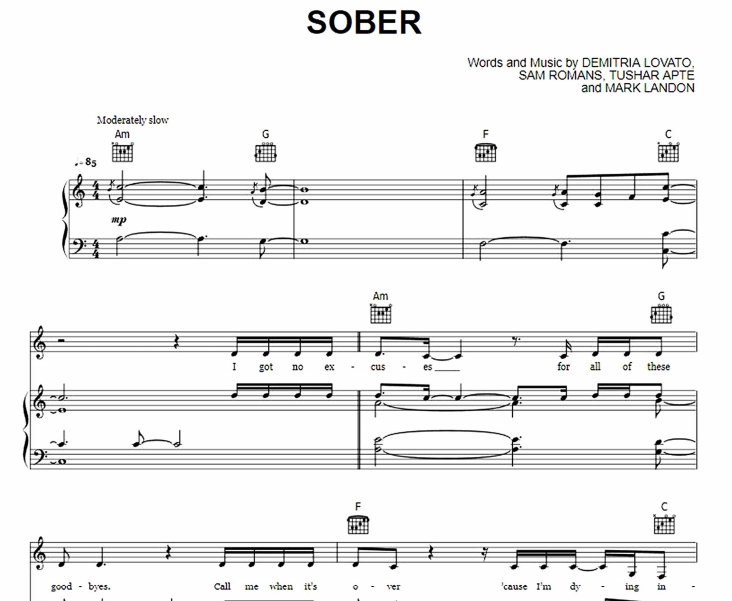 Sober Sheet Music Demi Lovato-thepianonotes.com