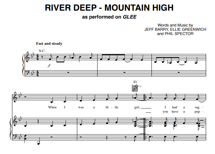 Glee-River Deep Mountain High Free Sheet Music PDF for Piano