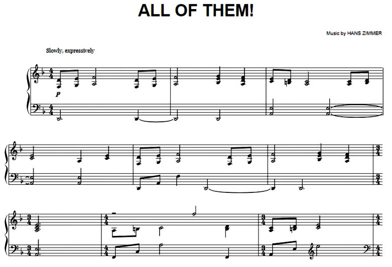 Hello music lovers, today I am sharing the piano notes of the song Hans Zimmer-All Of Them. You can use the download links below to download Hans Zimmer-All Of Them PDF scores.
