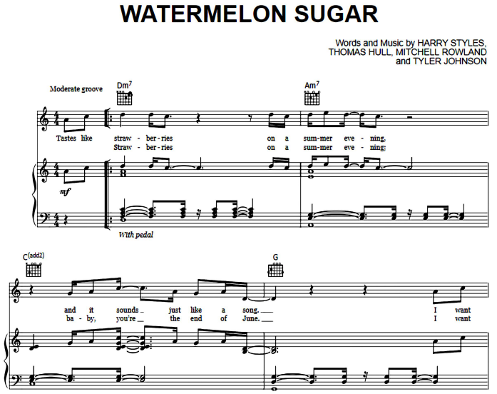 Watermelon Sugar Sheet Music Harry Styles-thepianonotes.com