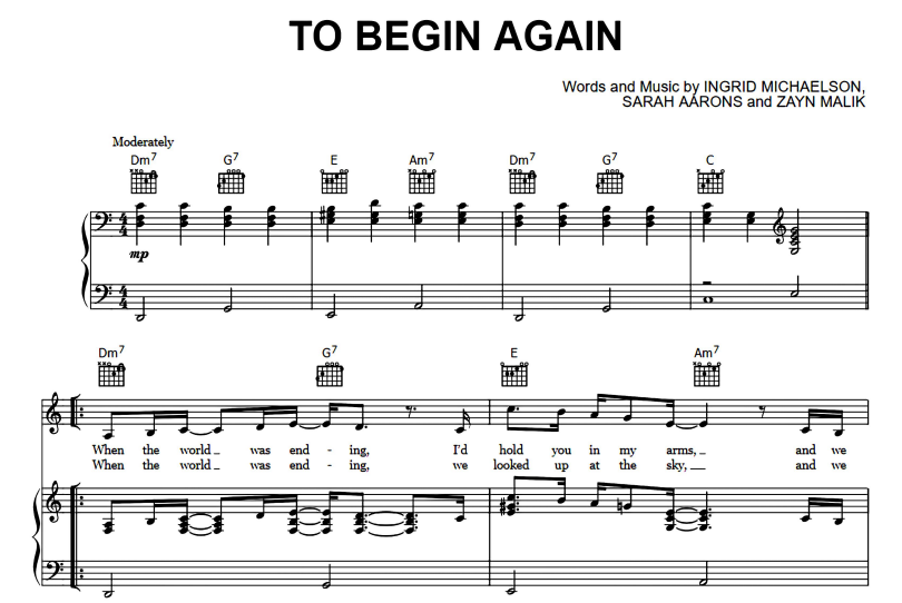 To Begin Again Sheet Music Ingrid Michaelson & ZAYN-thepianonotes.com