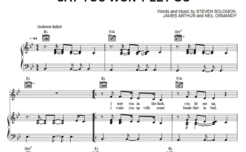 James Arthur-Say You Won’t Let Go Free Sheet Music PDF for Piano