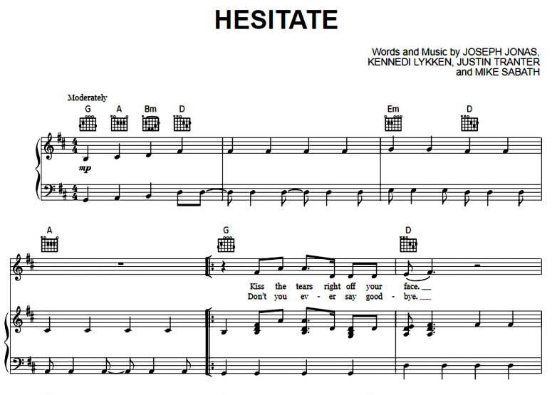 Hello music lovers, today I am sharing the piano notes of the song Jonas Brothers-Hesitate. You can use the download links below to download Jonas Brothers-Hesitate PDF scores.