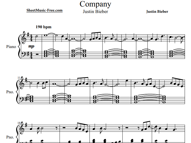 Hello music lovers, today I am sharing the piano notes of the song Justin Bieber-Company. You can use the download links below to download Justin Bieber-Company PDF scores.