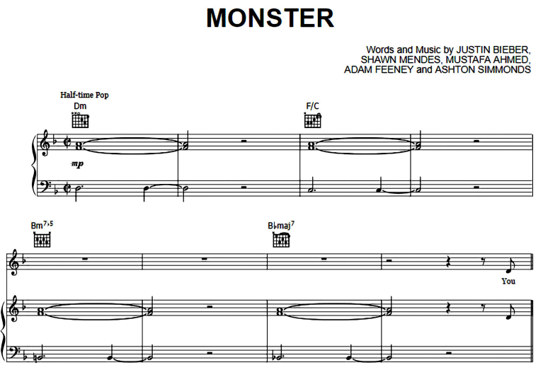 Hello music lovers, today I am sharing the piano notes of the song Justin Bieber-Monster. You can use the download links below to download Justin Bieber-Monster PDF scores.