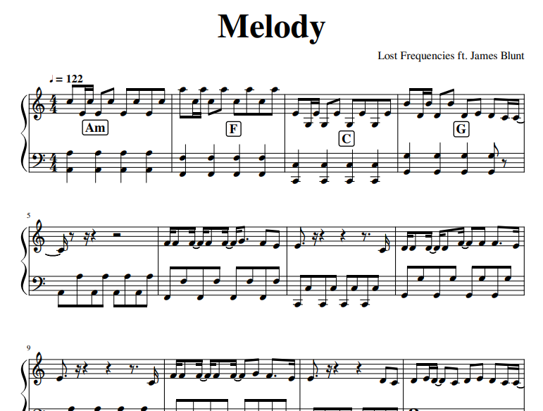 Melody Sheet Music Lost Frequencies ft James Blunt-thepianonotes.com