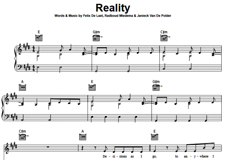 Reality Sheet Music Lost Frequencies-thepianonotes.com