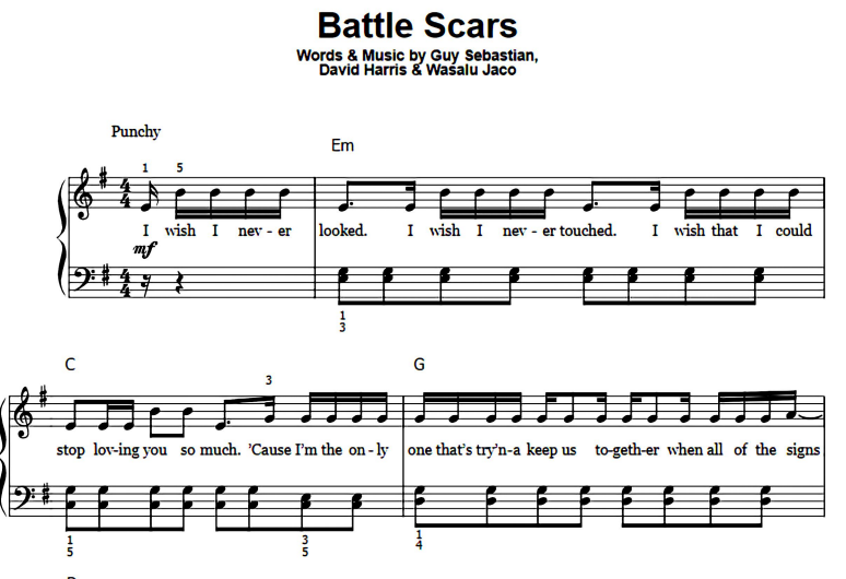 Battle Scars Sheet Music Lupe Fiasco _ Guy Sebastian-thepianonotes.com