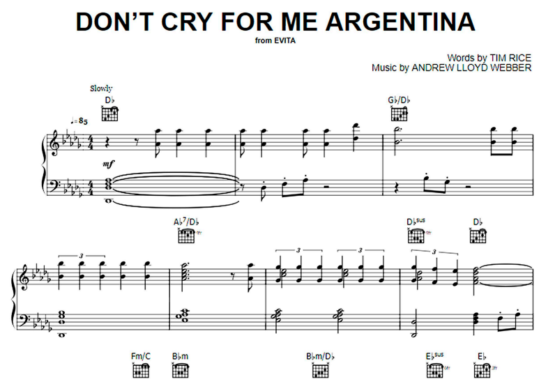 Hello music lovers, today I am sharing the piano notes of the song Madonna-Don’t Cry For Me Argentina. You can use the download links below to download Madonna-Don’t Cry For Me Argentina PDF scores.