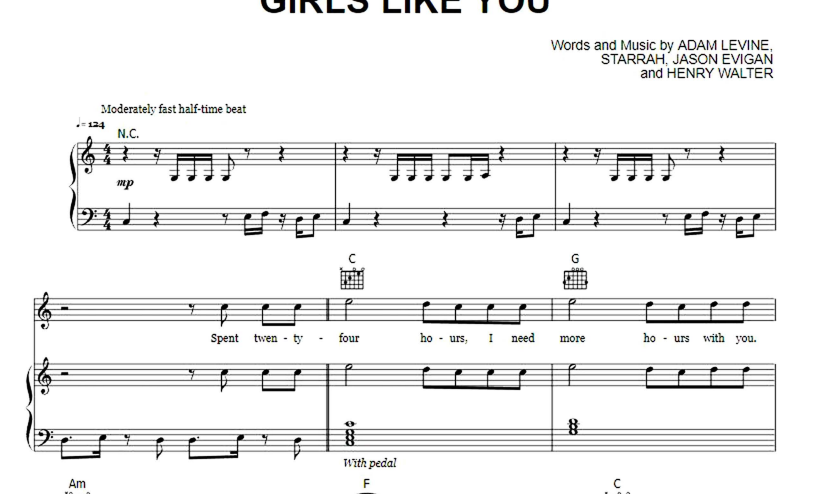 Maroon 5-Girls Like You Free Sheet Music PDF for Piano