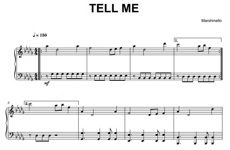 Hello music lovers, today I am sharing the piano notes of the song Marshmello-Tell Me. You can use the download links below to download Marshmello-Tell Me PDF scores.