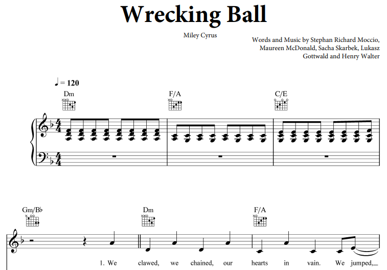 Hello music lovers, today I am sharing the piano notes of the song Miley Cyrus-Wrecking Ball. You can use the download links below to download Miley Cyrus-Wrecking Ball PDF scores.