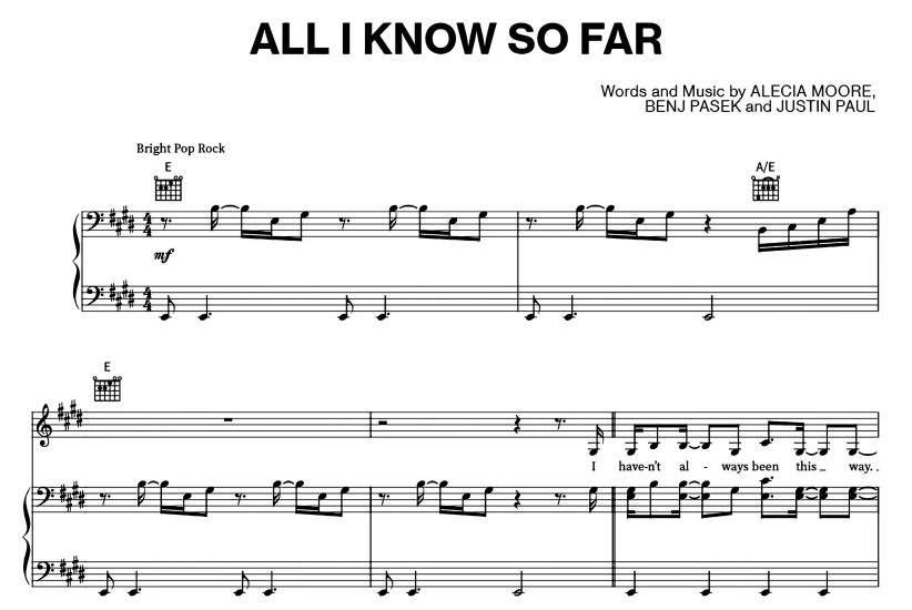 All I Know So Far Sheet Music Pink-thepianonotes.com