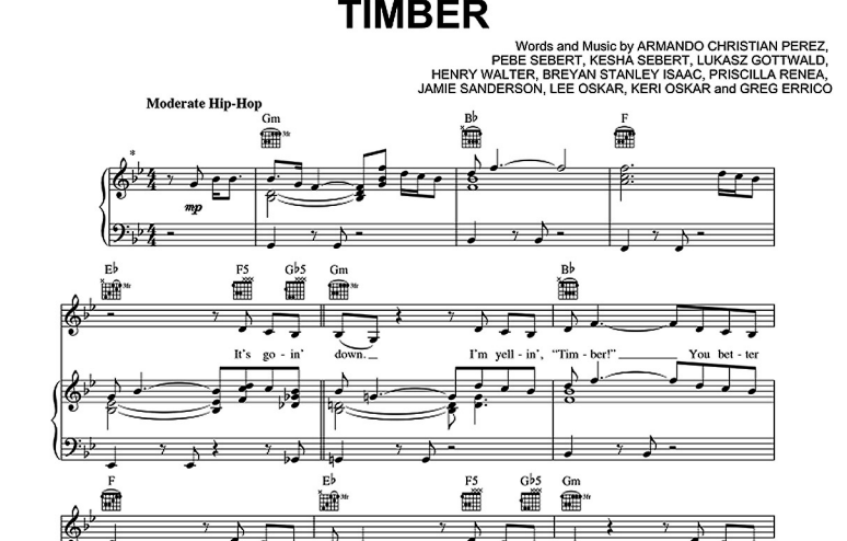 Pitbull-Timber Free Sheet Music PDF for Piano