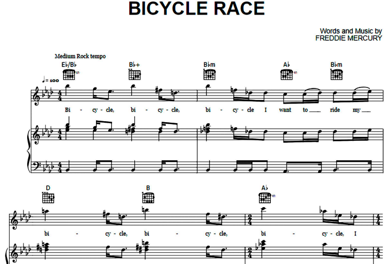 Hello music lovers, today I am sharing the piano notes of the song Queen-Bicycle Race. You can use the download links below to download Queen-Bicycle Race PDF scores.