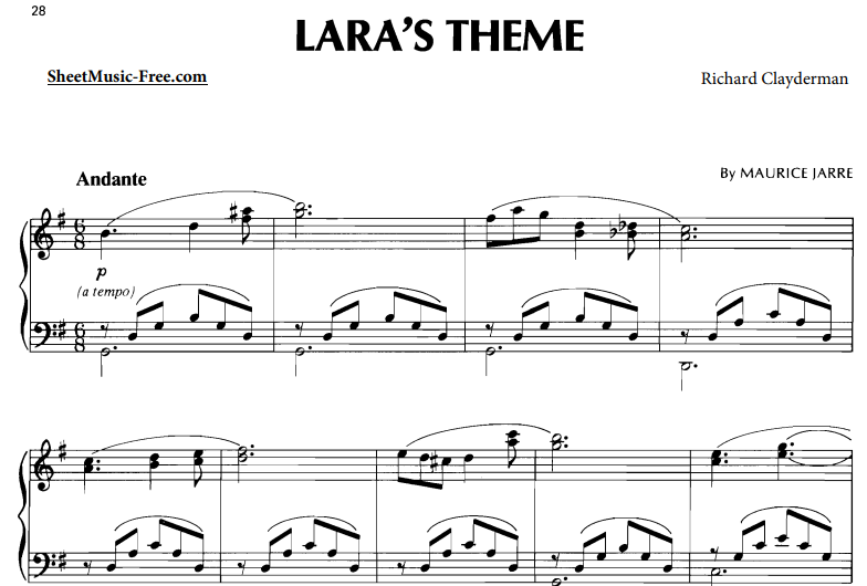 Richard Clayderman-Lara’s Theme Free Sheet Music PDF for Piano