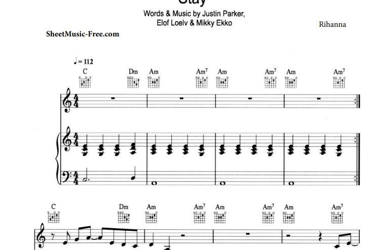 Rihanna-Stay Free Sheet Music PDF for Piano