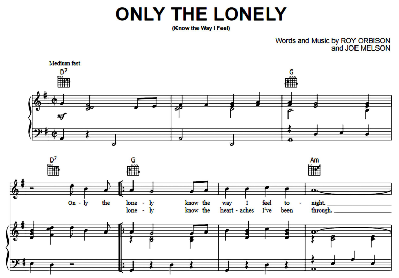 Only The Lonely Sheet Music Roy Orbison-thepianonotes.com