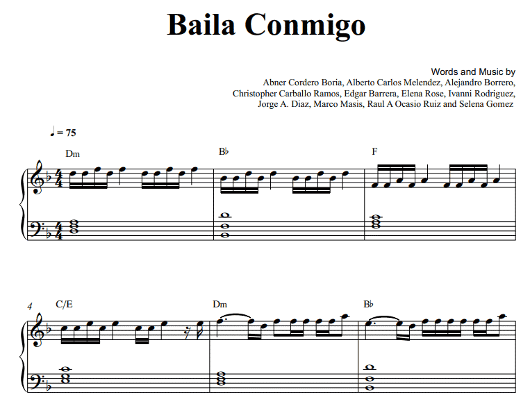 Hello music lovers, today I am sharing the piano notes of the song Selena Gomez-Baila Conmigo. You can use the download links below to download Selena Gomez-Baila Conmigo PDF scores.