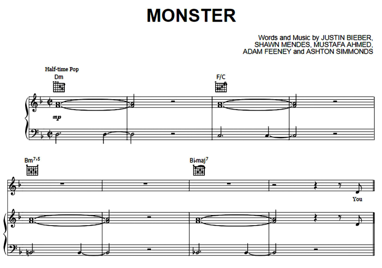Monster Sheet Music Shawn Mendes _ Justin Bieber-thepianonotes.com