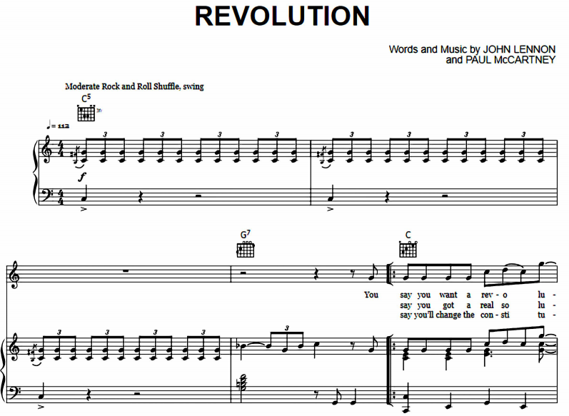 Revolution Sheet Music pdf The Beatles-thepianonotes.com