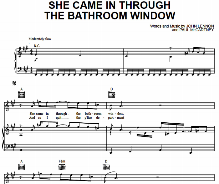 She Came In Through The Bathroom Window Sheet Music The Beatles-thepianonotes.com
