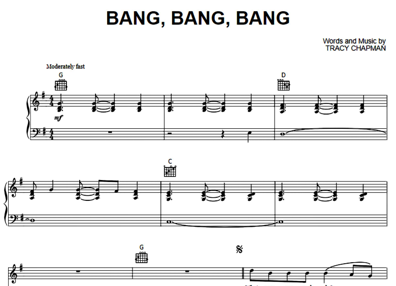 Bang Bang Bang Sheet Music Tracy Chapman-thepianonotes.com