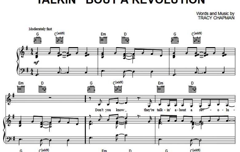 Tracy Chapman-Talkin’ Bout A Revolution Free Sheet Music PDF for Piano