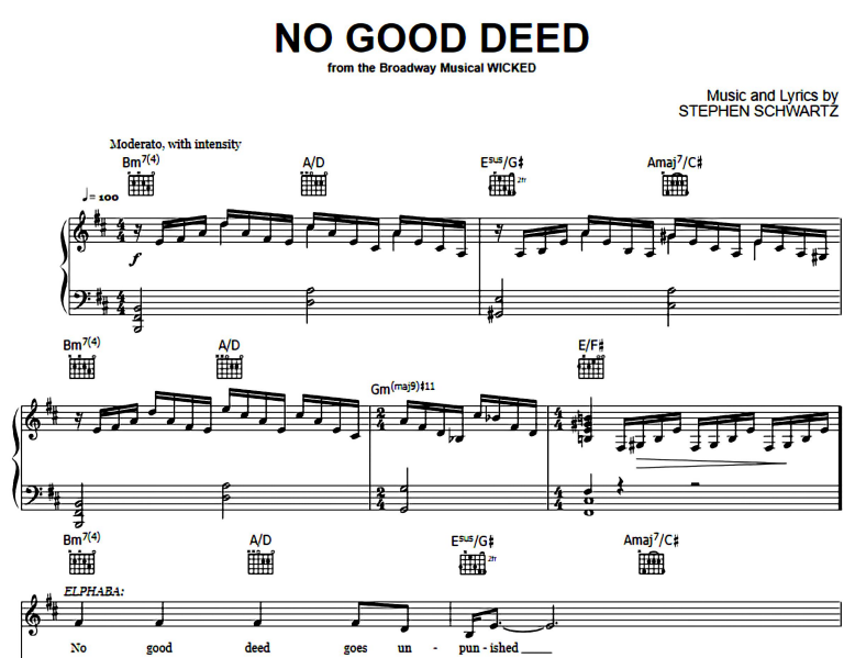 Hello music lovers, today I am sharing the piano notes of the song Wicked-No Good Deed. You can use the download links below to download Wicked-No Good Deed PDF scores.